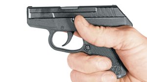 My favorite pick in this category is the Kel-Tec P-32 Auto. This pistol is called a pocket gun (it fits in your pocket but you should still highly consider using a holster.) If you don’t complain about carrying your smart phone around then you definitely won’t complain about the size of this. However, the .32 has less power than other calibers but with sufficient training and good placement, it might be enough to get the job done. Don’t expect to fire at long distances with this firearm but it’s certainly better than carrying nothing. If you worry about recoil and hand strength and need something that you can just about put in your sock without noticing, this is the gun for you.